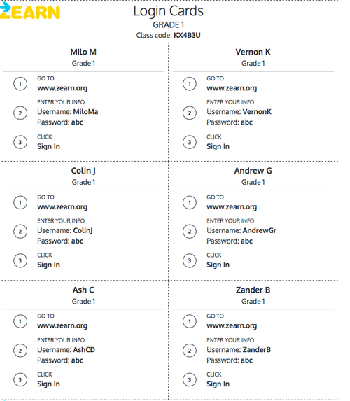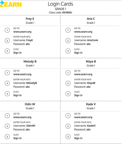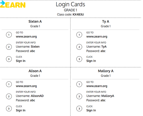 Here are the login codes for your student:
