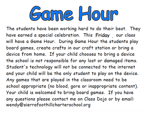 Thank you so much for preparing your child for the STAR assessments. They worked hard to do their best. Due to internet issues we will still be taking the STAR assessments tomorrow.